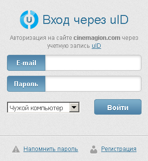 С помощью одной этой регистрации можно попадать, как говорят создатели системы uID, более чем на миллион сайтов, которые поддерживают данную систему. То есть регистрация одна (uID), а войти можно на любой свой аккаунт на любом из сайтов, работающих в uID (в том числе и на наш — см. картинку далее или читайте здесь, в самом верху: http://cinemagion.com/index/3):